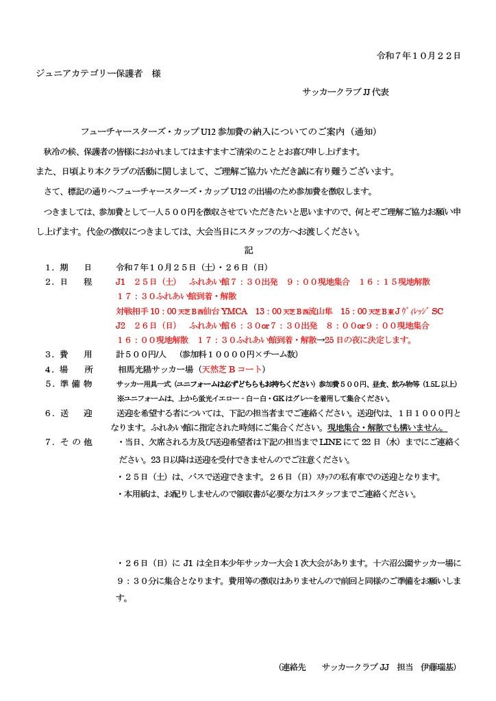 | 自チーム | U12 | ||